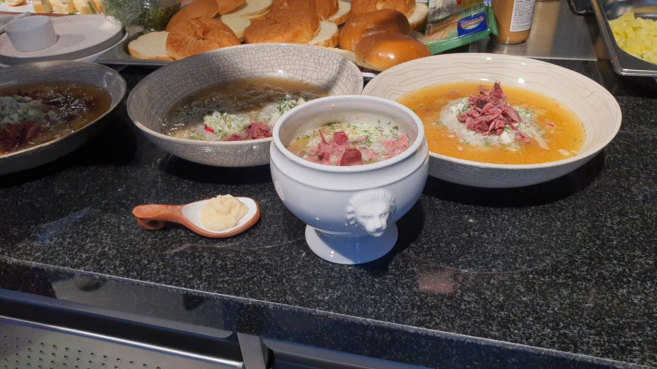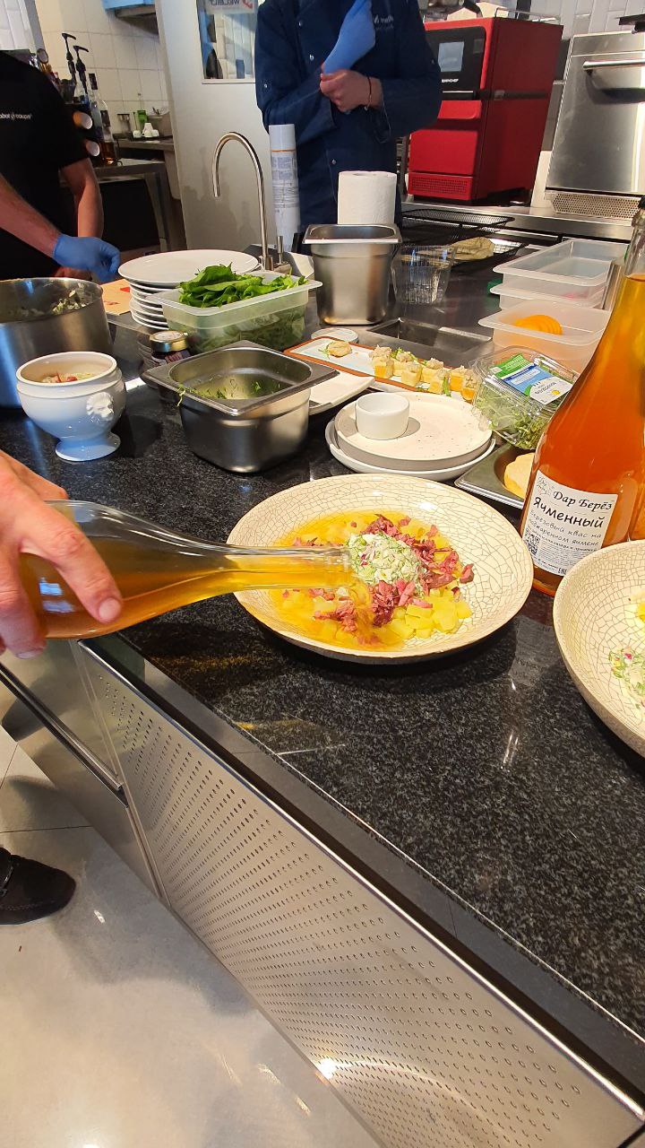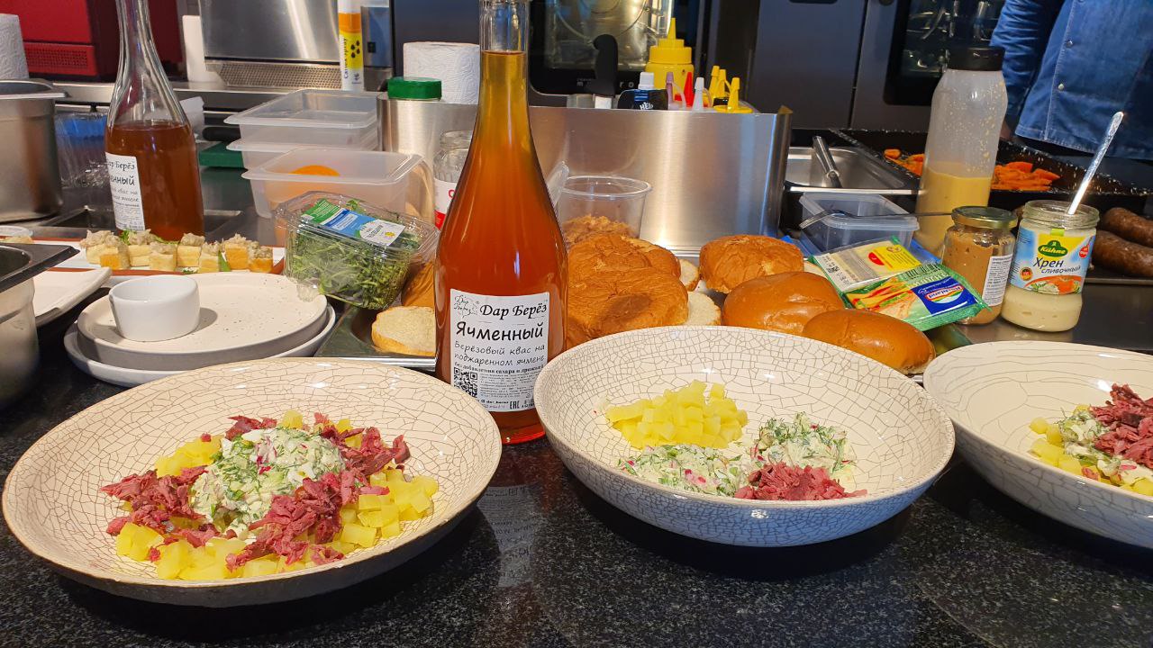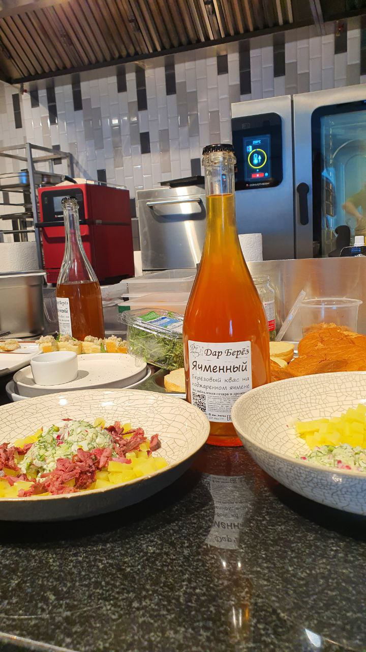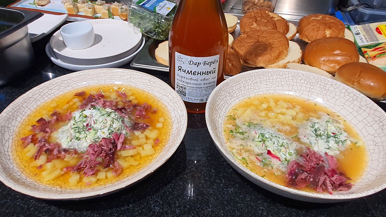 - Окрошка на березовом квасе с дичью;