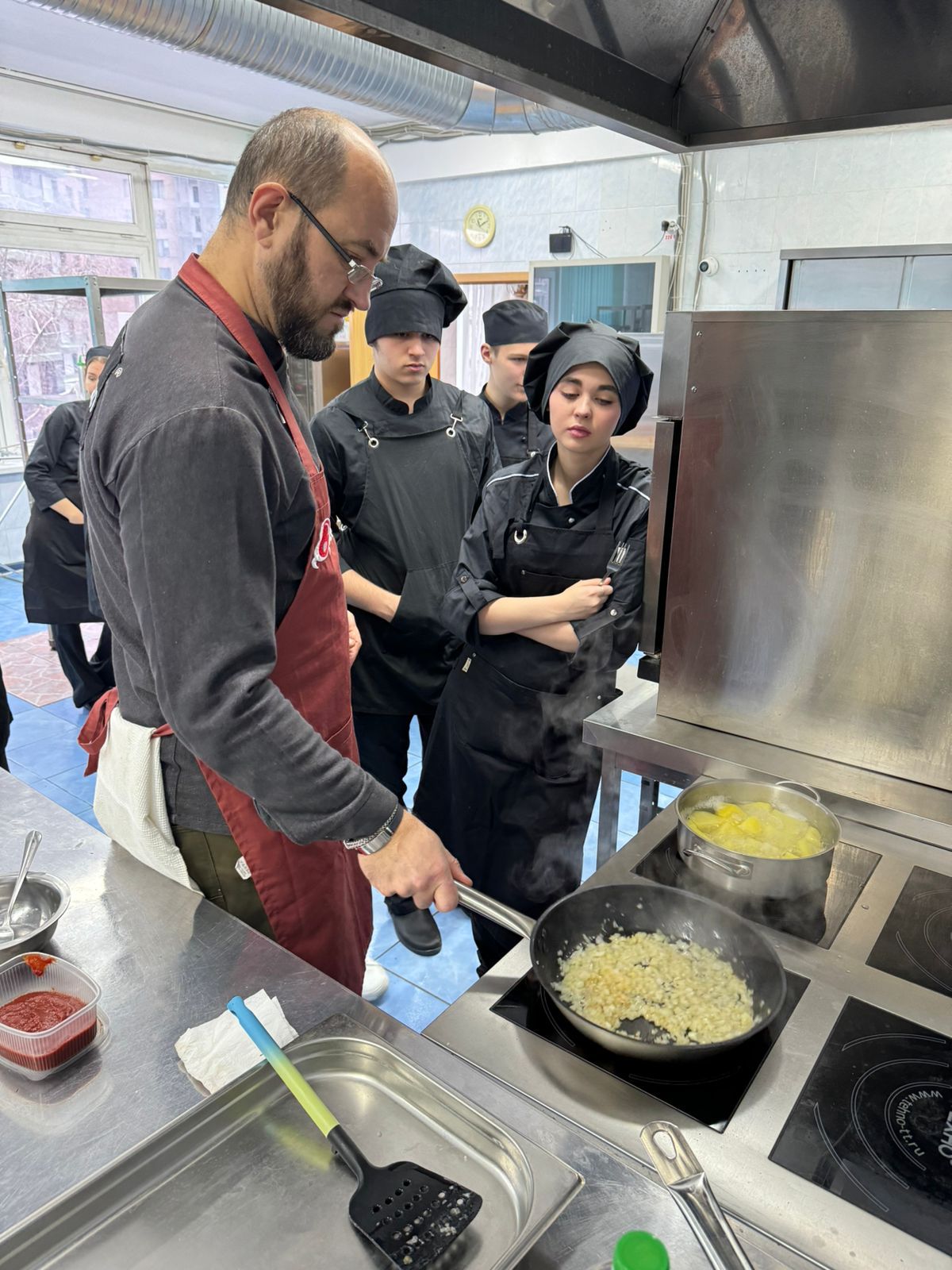 На протяжении всего мастер-класса шеф-повар делился своими секретами и тонкостями приготовления блюд из мяса северного оленя, отвечая на возникающие вопросы студентов.