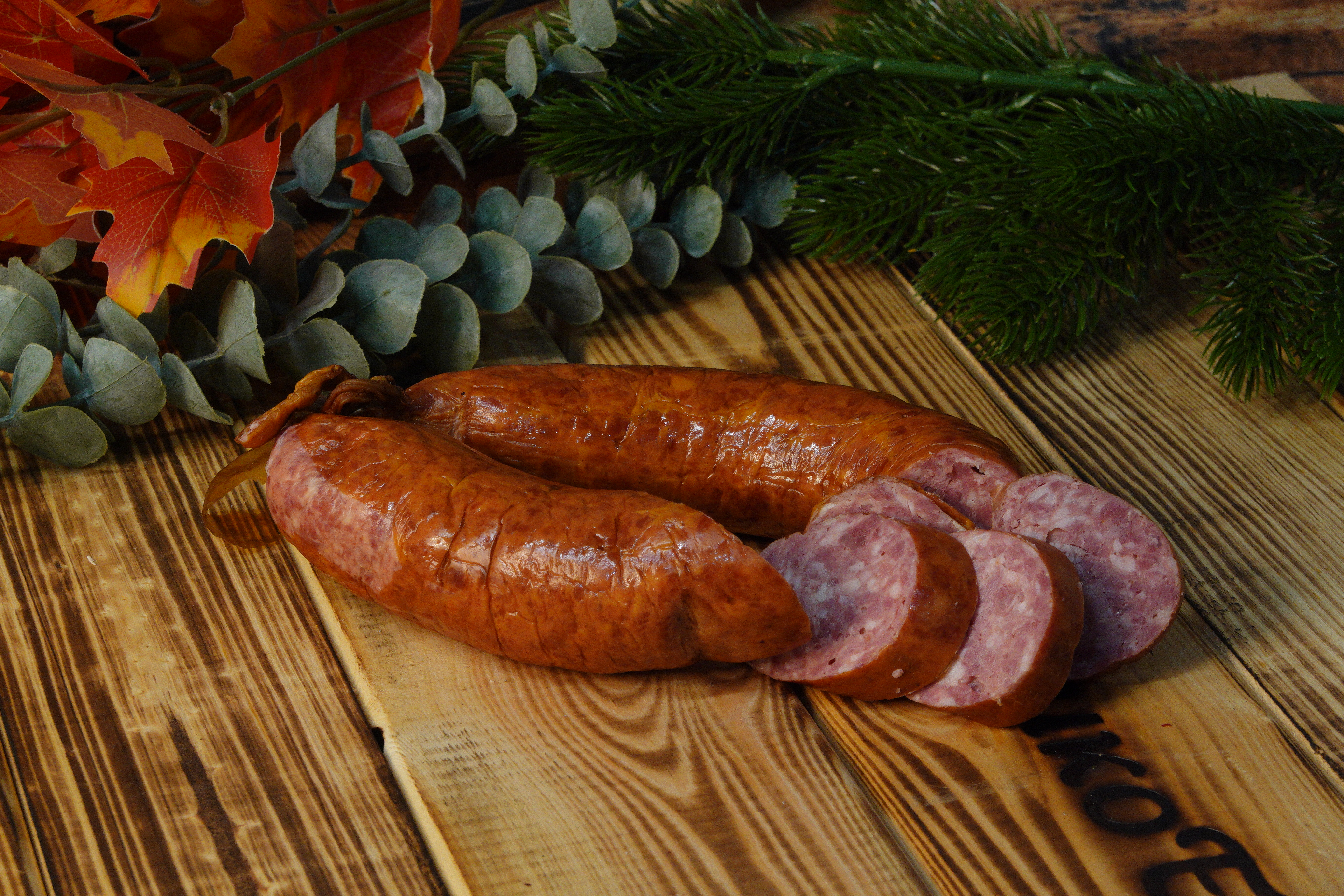 Колбаса готовится «дедовским» методом, на натуральной щепе, без использования искусственных консервантов. Замечательно сочетается со свежими овощами. Разнообразит меню повседневного и праздничного стола. Обеспечит достойную встречу нежданных гостей. Послужит отличной закуской к красному вину и не десертным горячительным напиткам.