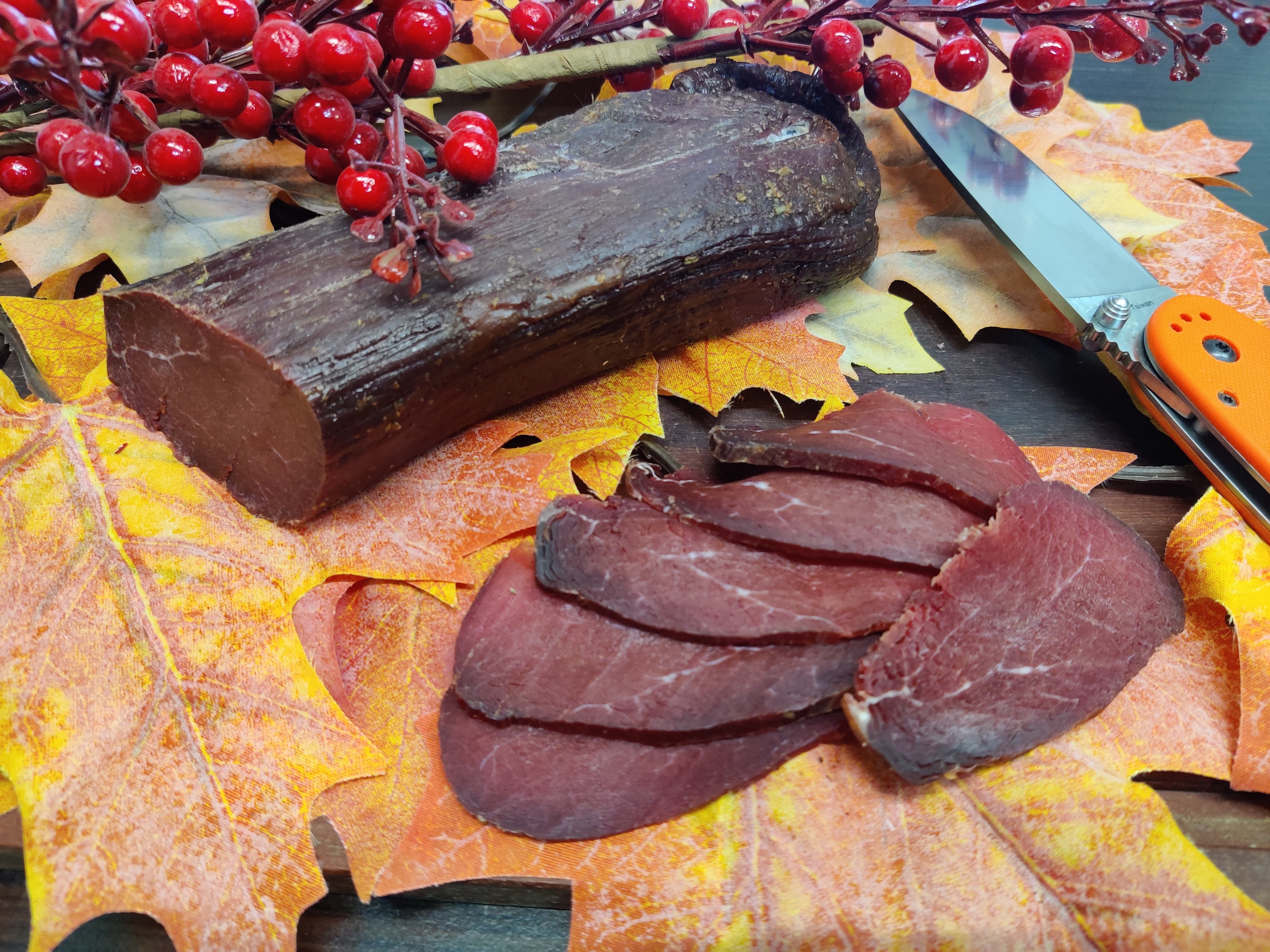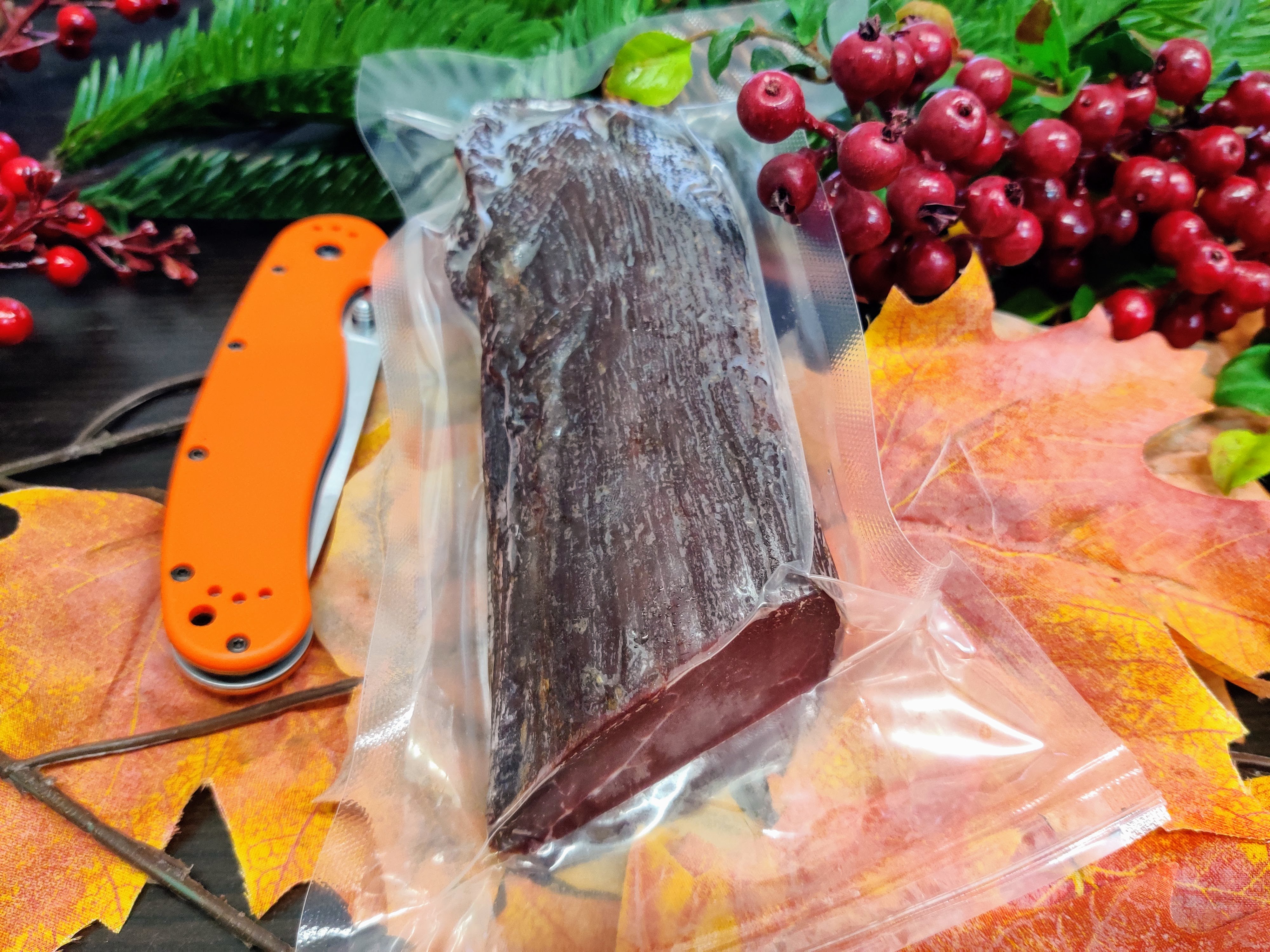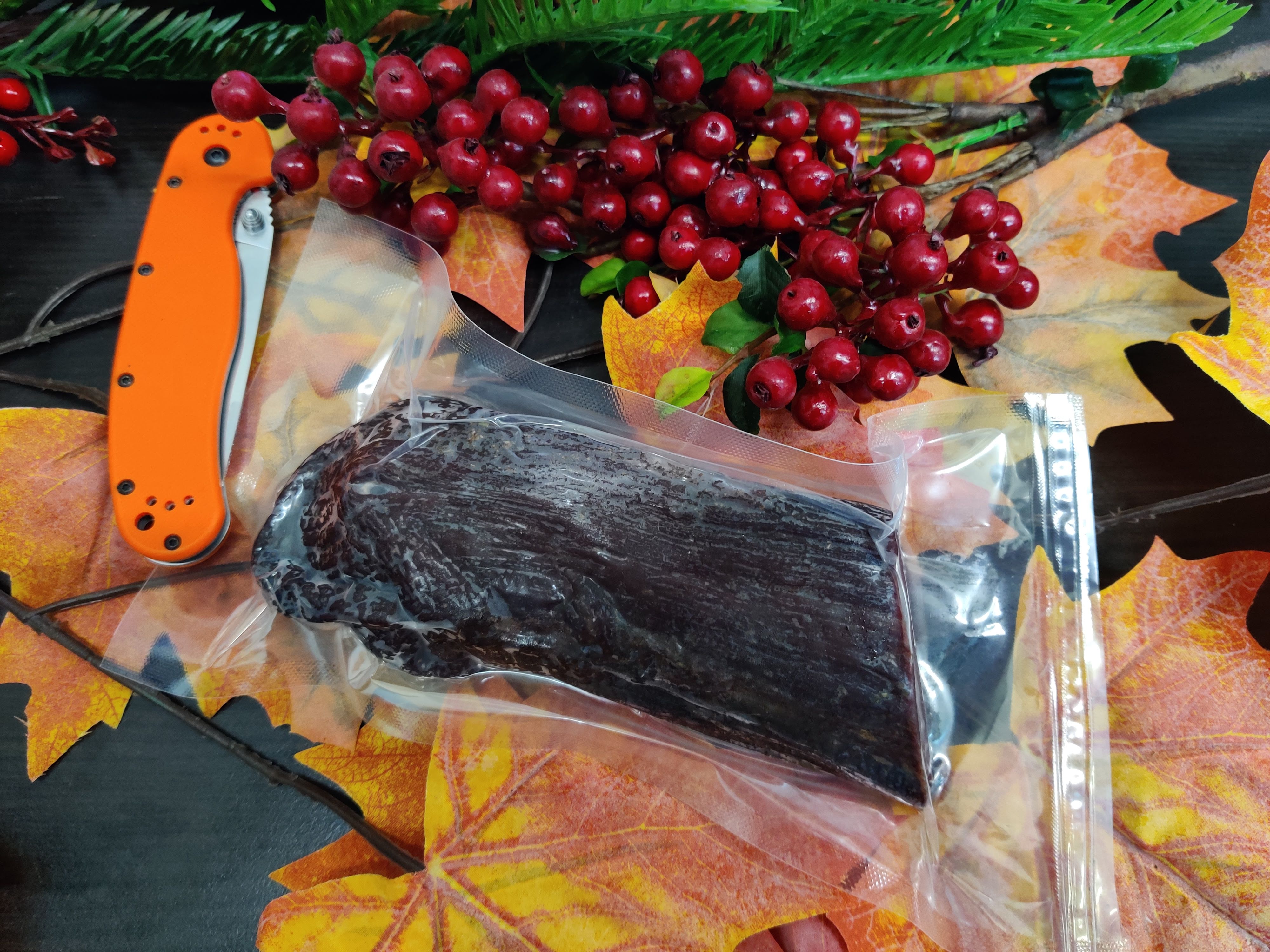 Пи приготовлении не использовалось никаких химических ингредиентов: только соль и специи, поэтому сыровяленую корейку из лося можно считать абсолютно натуральным продуктом.