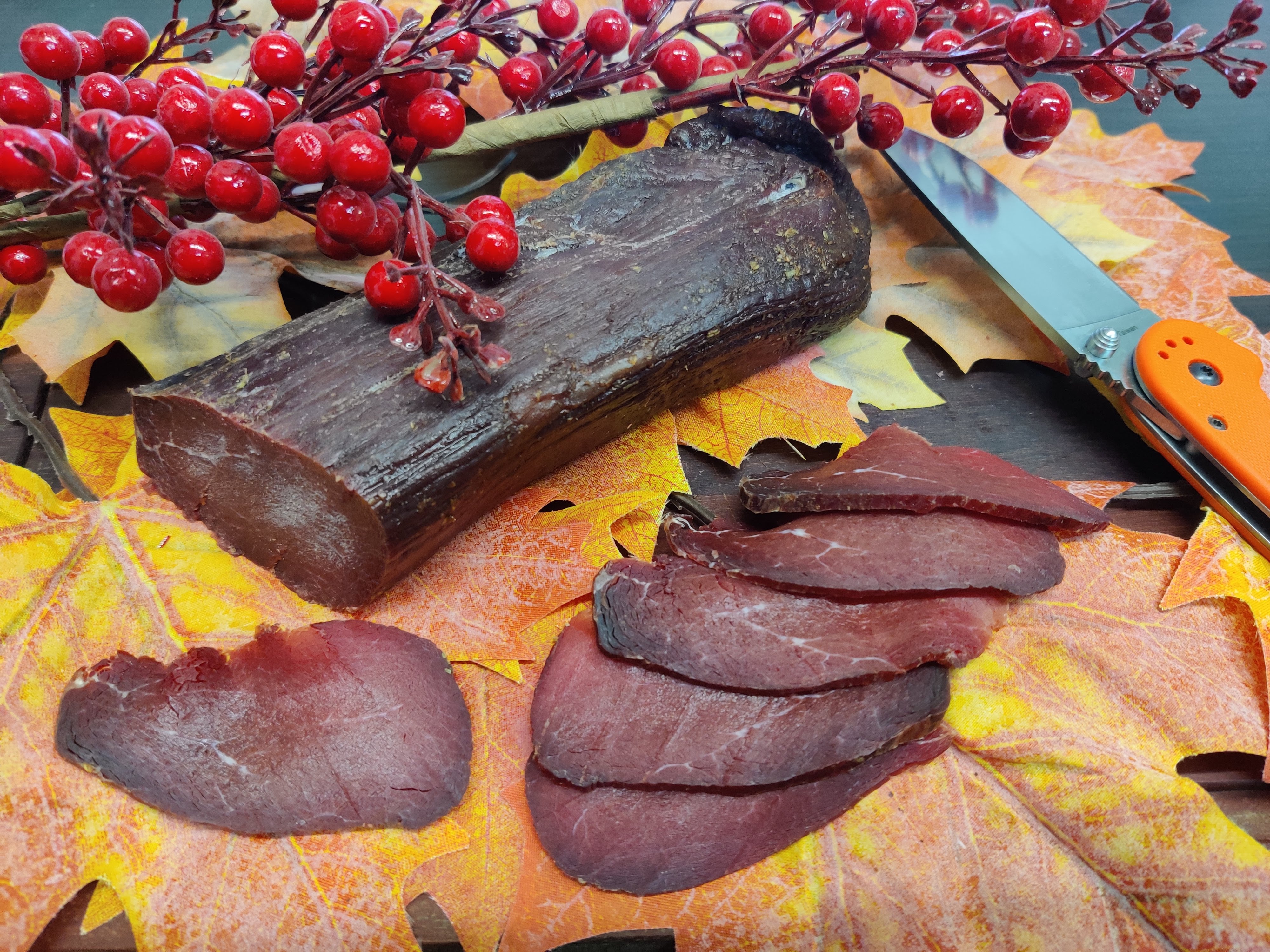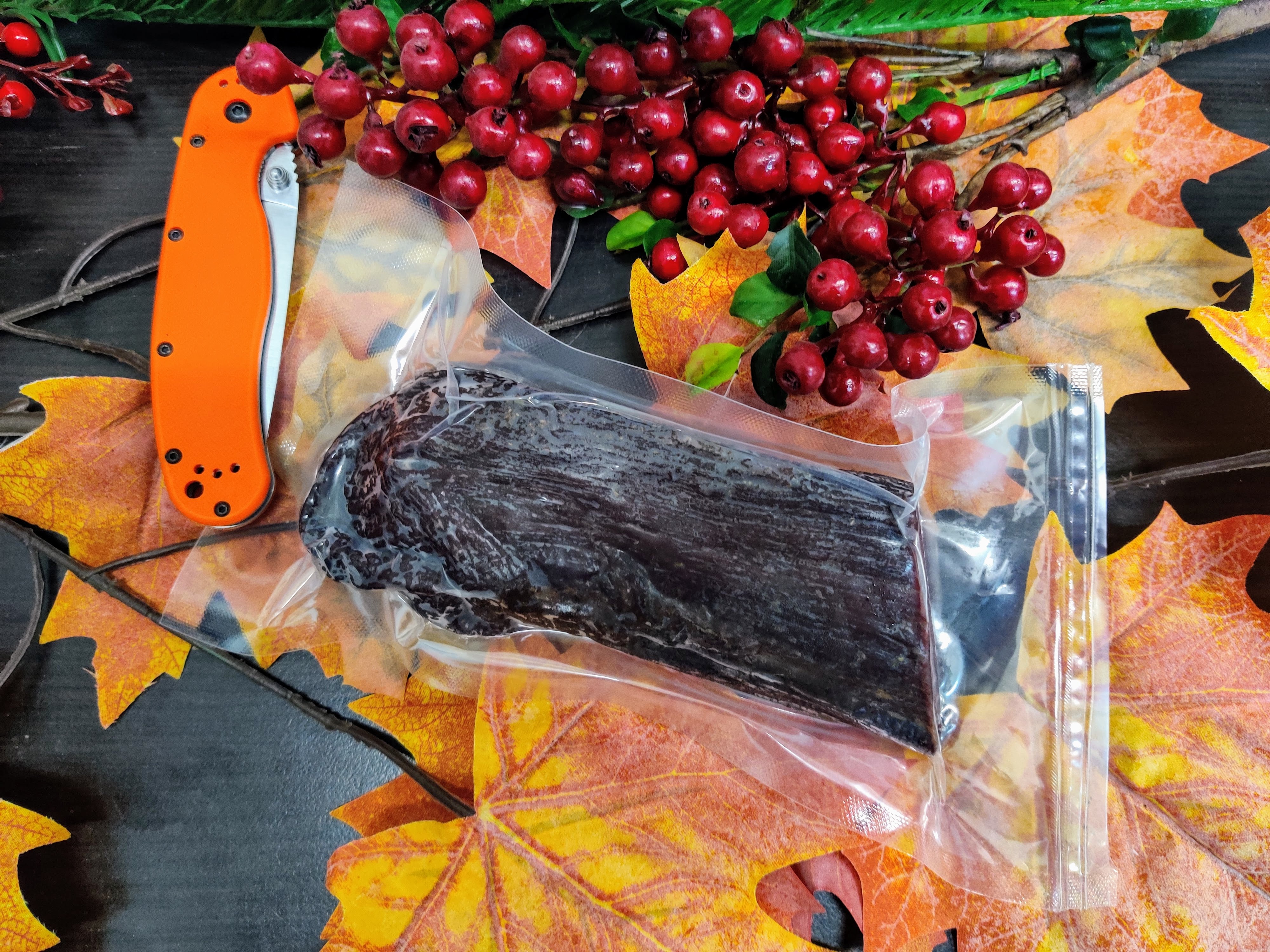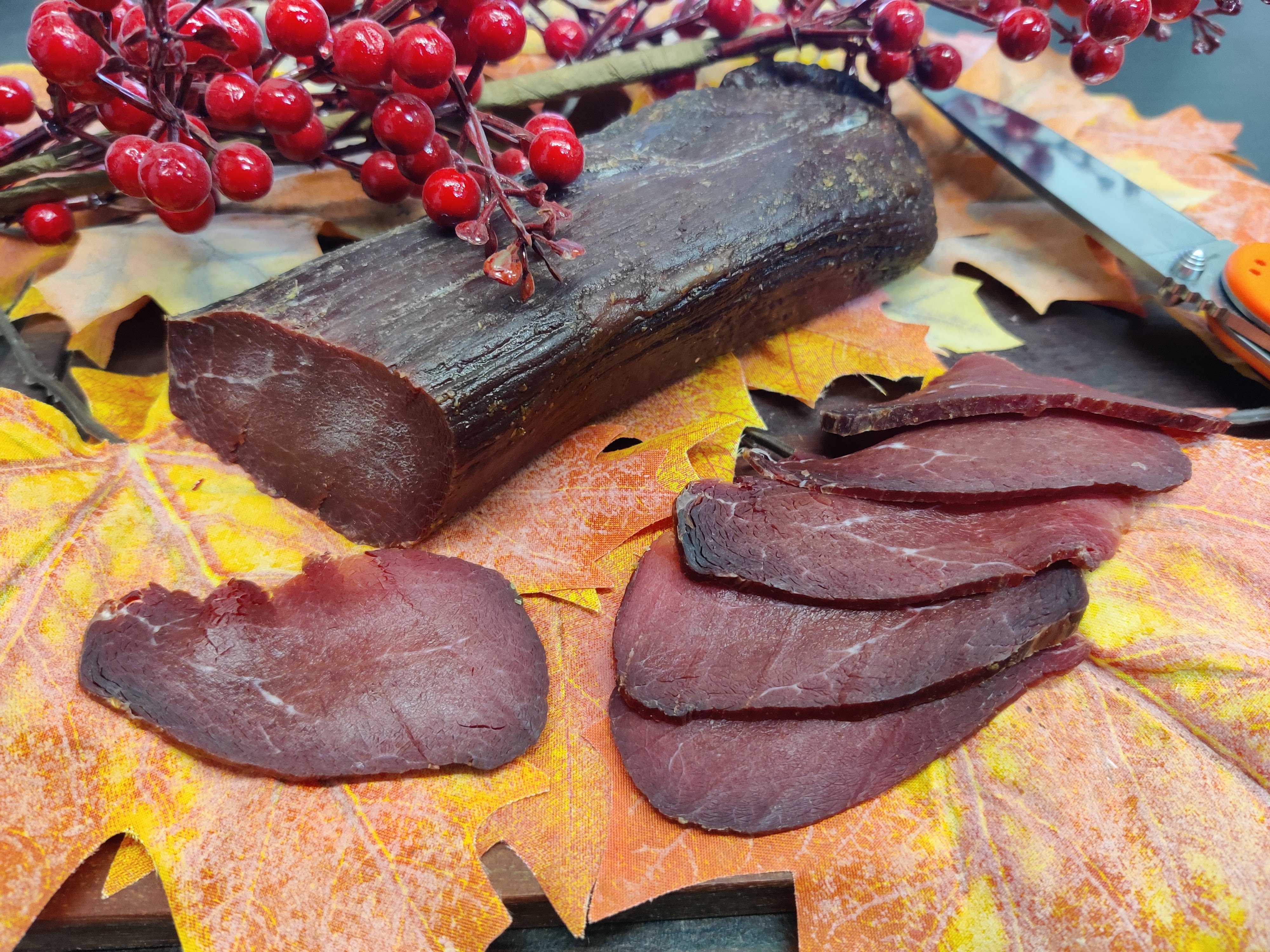 Пи приготовлении не использовалось никаких химических ингредиентов: только соль и специи, поэтому сыровяленую корейку из лося можно считать абсолютно натуральным продуктом.