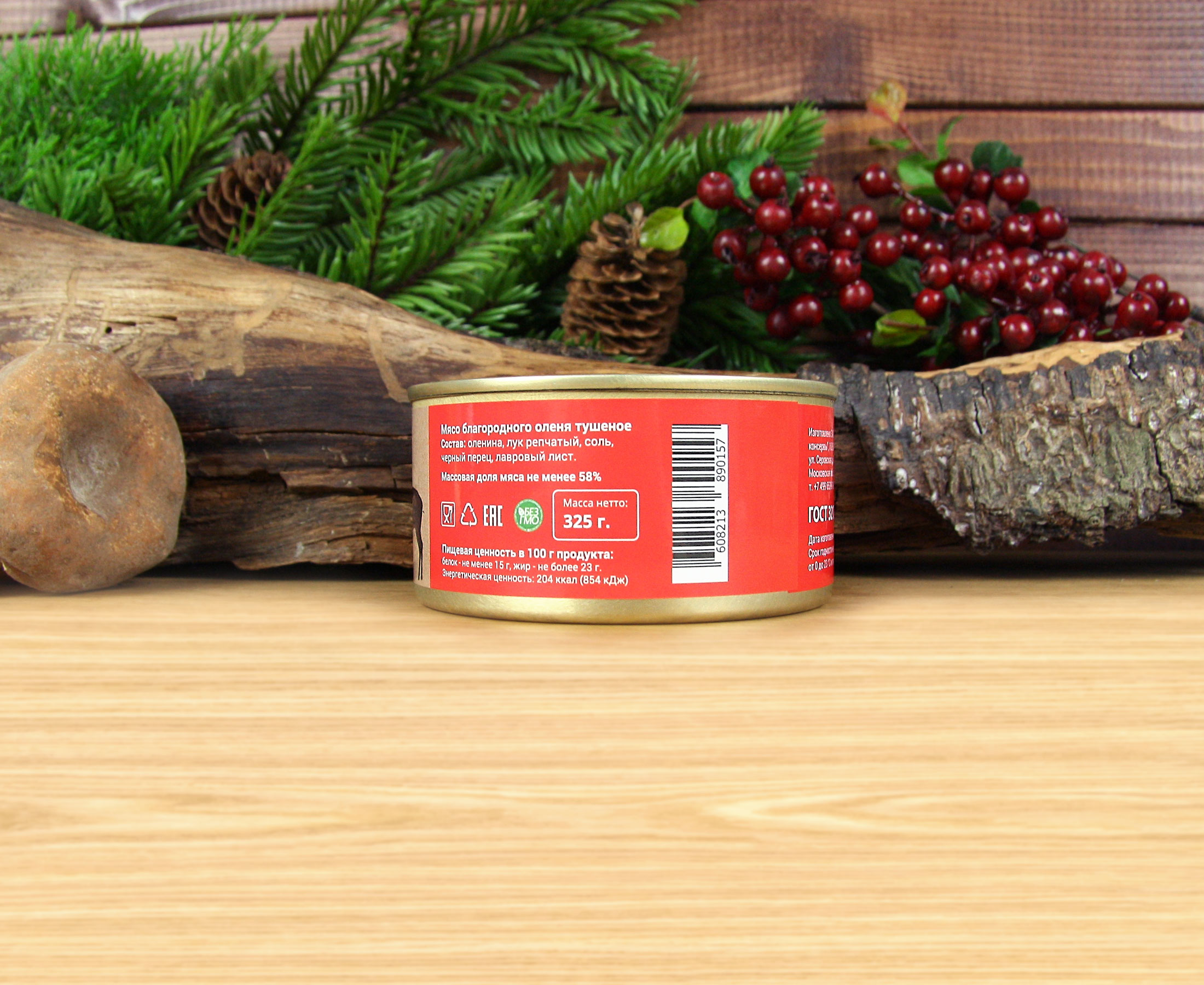 Состав: | оленина, лук репчатый, соль, черный перец, лавровый лист. |