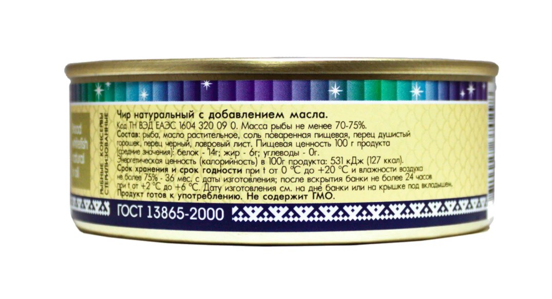 Состав: | рыба, масло, соль, перец, лавровый лист |