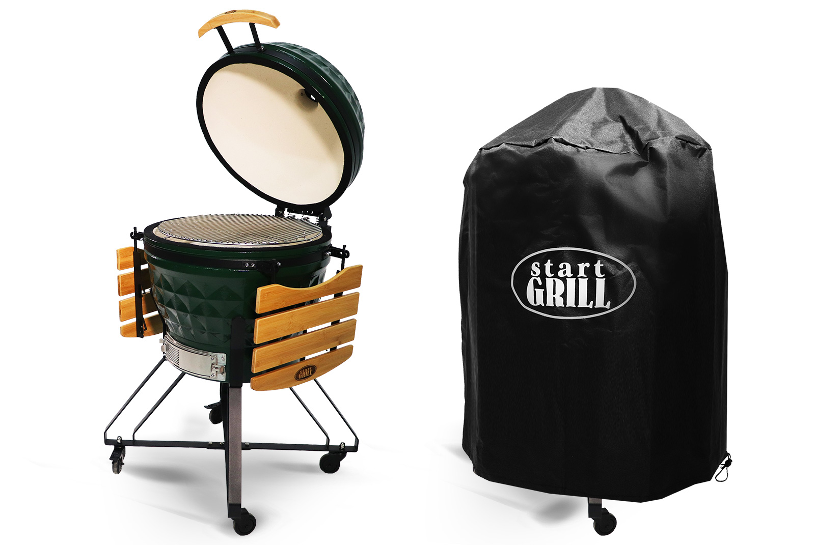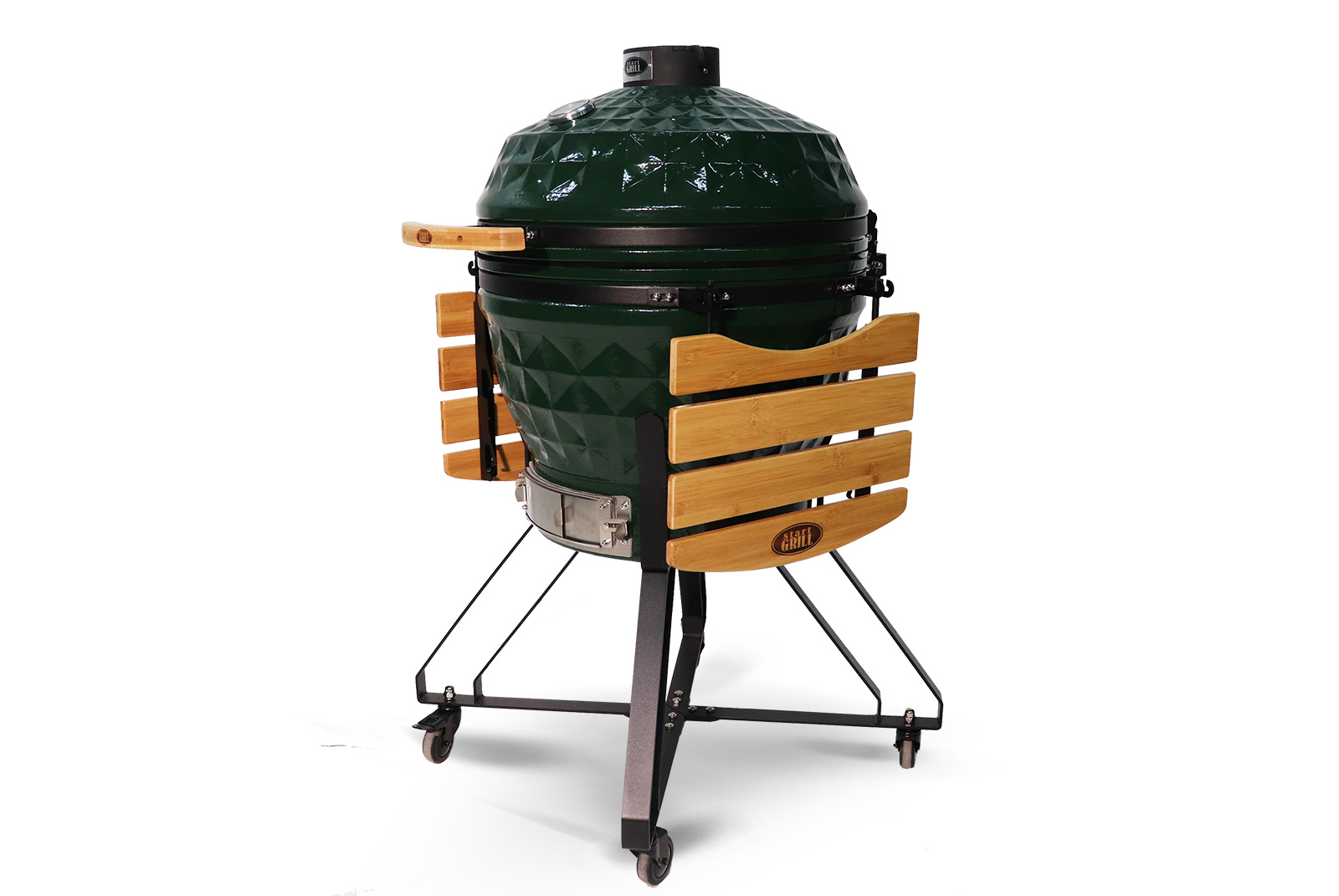Популярность керамического гриля заключается не только в его многофункциональности и прочности, но и в возможности передавать особенный естественный аромат и вкус блюд. Толстые керамические стенки прекрасно выполняют свои функции: удерживают тепло долгое время, способствуют созданию оптимальных условий приготовления аппетитных блюд, обеспечивают многолетнюю службу прибора. Размеры этой модели располагают к её размещению в одной точке приусадебного участка, без необходимости частых перемещений. Однако всё же если такая необходимость появится, тележка и колёса, идущие в комплекте, существенно облегчат задачу по транспортировке гриля на новое место, где будет только приятнее наслаждаться ароматными блюдами из запечённого мяса и рыбы.